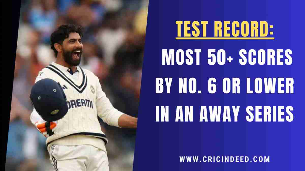 A total of six fifty-plus scores is the most a batter has scored in a single Test series while coming at No. 6 or lower. This unique Test record is held by Alexander, Raza, and Ravindra Jadeja, all of whom scored a solitary century each in their respective series.
