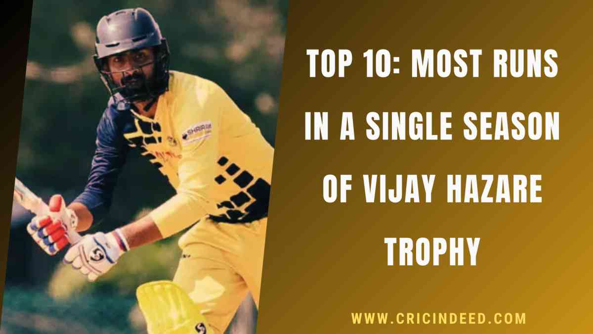 In this article, we’ll look at the top 10 instances of batters scoring the most runs in a single Vijay Hazare Trophy season.