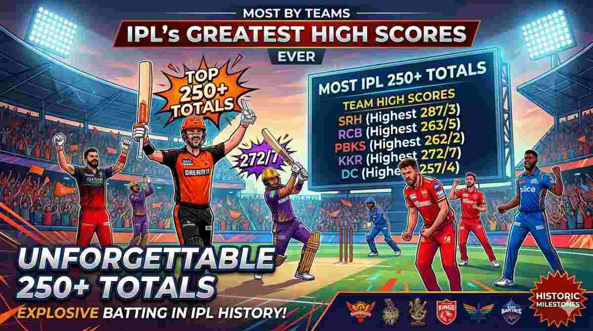 | Team | No. of 250+ Scores | Highest Score | Scores |